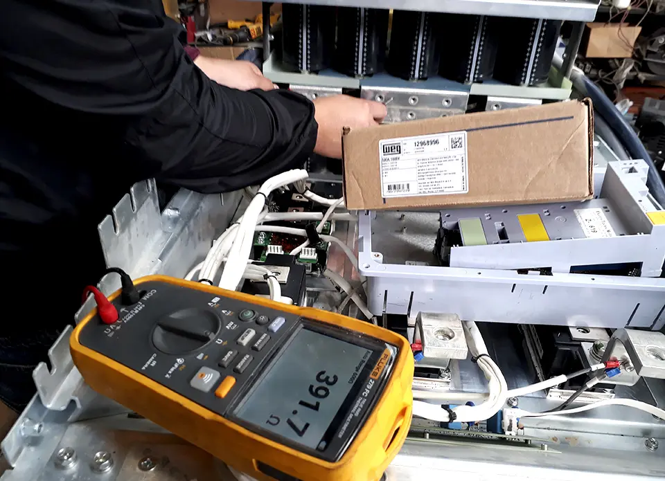 Nuestro equipo técnico reemplaza componentes clave como tarjetas de fuente, rectificadores de entrada, capacitores (reforming), ventiladores, entre otros. Este servicio asegura que los drives reciban el mantenimiento necesario para prevenir fallos y garantizar un rendimiento eficiente.